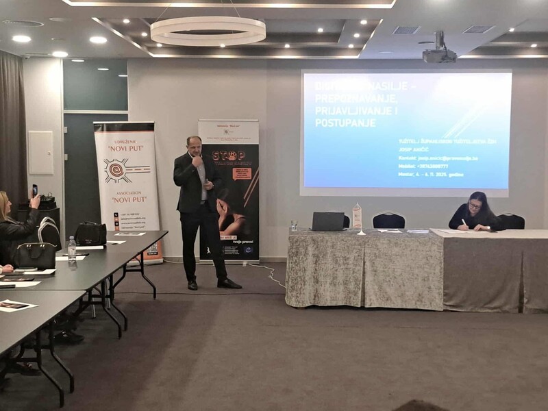 Naša škola posvećena je sigurnosti učenika i osoblja, kako u stvarnom, tako i u digitalnom svijetu. S tim ciljem je pedagogica naše škole, Asidina Duraković, u periodu od 4. do 6. novembra prisustvovala obuci na temu: Postupanje u slučajevima digitalnog nasilja nad ženama koju je organizovalo Udruženje „Novi put” u saradnji s Koordinacionim timovima iz HNK.