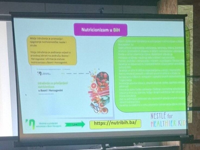 Nastavnice Aldina Kukavica i Harisa Čavčić predstavljale su našu školu na stručnoj prezentaciji posvećenoj edukaciji o zdravoj ishrani, koja je okupila nastavnike, pedagoge i stručnjake iz oblasti nutricionizma. Cilj edukacije bio je unaprijediti znanja prosvjetnih radnika o važnosti životnih zdravih navika te pružiti im praktične smjernice koje mogu primijeniti u svakodnevnom radu s učenicima.