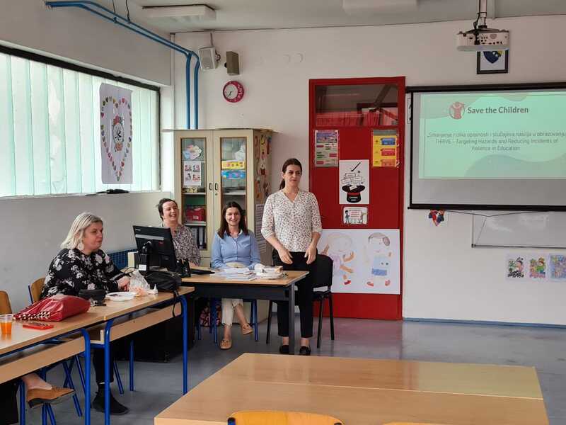 U okviru projekta „Smanjenje rizika opasnosti i slučajeva nasilja u obrazovanju” (THRIVE) u organizaciji Save the Children fondacije, održano je predavanje za nastavno osoblje na temu prepoznavanja i reagovanja na nasilje i druge vrste rizika i opasnosti za učenike. Predavanje se realizovalo u tri sesije (16, 18. i 19. aprila 2024.), a održali su ga članovi Tima za sigurnost djece naše škole: Arnela Šejtanić, Asidina Duraković i Dženita Muharemović-Krhan.