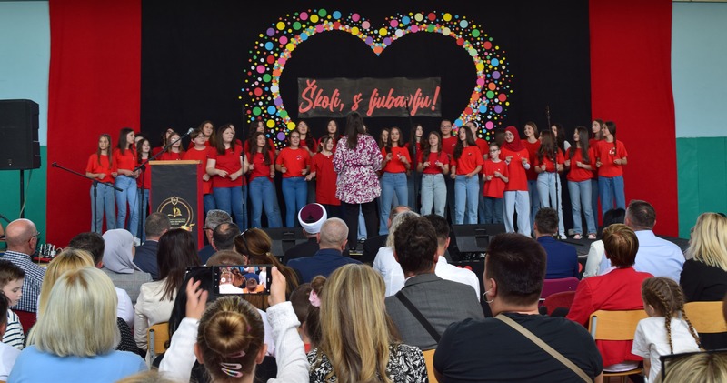 Slavili smo ljubav i istinski uživali u svakom trenutku. Predstavnici školskih sekcija su pjesmom i plesom pokazali na čemu su, zajedno sa svojim učiteljima i nastavnicima, vrijedno radili cijelu školsku godinu. Upijali smo dječije osmijehe, voljeli i dijelili sreću. Prisutnima se obratio direktor škole, g. Tahir Taslaman, podsjetivši na dugi historijat ustanove koja danas nosi naziv po jednom od najumnijih ljudi koje je ovaj grad imao. Sjetili smo se i brojnih drugih znamenitih ličnosti koje su svoje osnovno obrazovanje stekli upravo u našoj školi. A bilo ih je... Proglasili smo ponose škole, kao i učenicu generacije. U generaciji 2015 – 2024. tu titulu ponijela je učenica IX b Šejma Potur. Plaketa bivšem učeniku škole ove godine je jednoglasnom odlukom školske komisije otišla u ruke gospođe Fatime Leho, a obratila nam se i nastavnica školske 2023/2024. godine podsjetivši na važnost učiteljske profesije. Dan škole su, svojim prisustvom, uljepšali i gosti: predškolarci dječijeg vrtića Ciciban te učenica 5. razreda muzičke škole Lena Masleša. Na kraju, zajedničkim nastupom učenika i nastavnika uz pratnju gitare Adnana Pajevića, poslali smo poruku... da ljubav pobjeđuje sve!