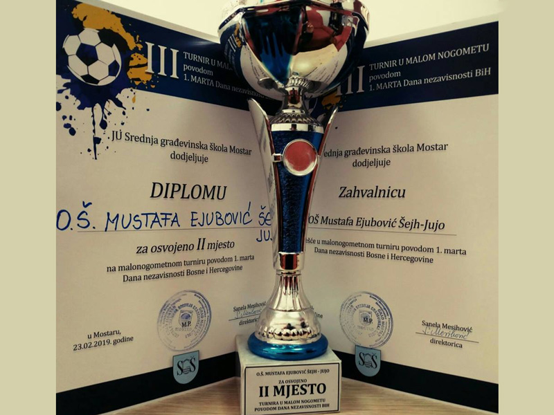 Predstavnici naše škole osvojili su drugo mjesto na trećem malonogometnom turniru Građevinske škole Mostar, organizovanom povodom Dana nezavisnosti BiH.