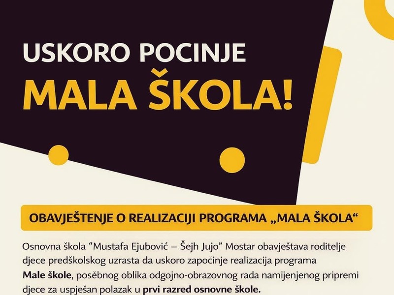 Program Male škole predstavlja važan segment tog rada, kroz koji djeca predškolskog uzrasta imaju priliku da se, na njima blizak i prirodan način, upoznaju sa školskim okruženjem, razvijaju socijalne i komunikacijske vještine te stiču prve radne navike.