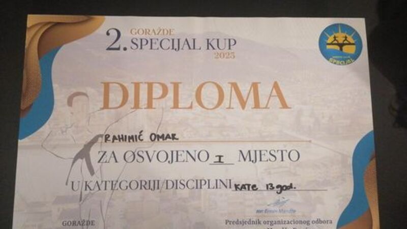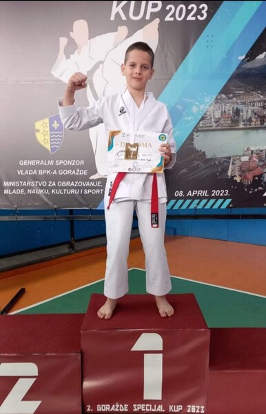 U kategoriji kate za dječake - 13 godina, osvojio je zlatnu medalju!