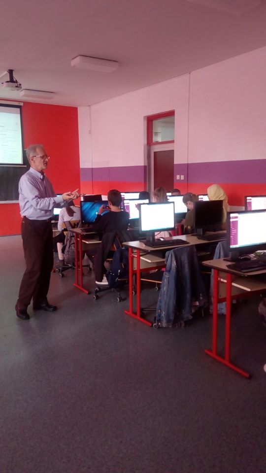 Prethodnih dana imali smo čast ugostiti dugogodišnjeg prijatelja prof. Mirzu Balića. Profesor je u saradnji s nastavnicama informatike Nerinom Abazović i Aidom Kurtović održao radionice za učenike sedmih, osmih i devetih razreda naše škole i OŠ „Mujaga Komadina”. Učenici su se na radionicama zabavili i isprobali Raspberry Pi i Micro:Bit računare koje je prof. Balić donirao. Također, sastavili su i testirali Piomoroni Pirate Radio, programirali Micro:Bit računare, ponešto naučili o novim tehnologijama i otkrili nove načine primjene računara.