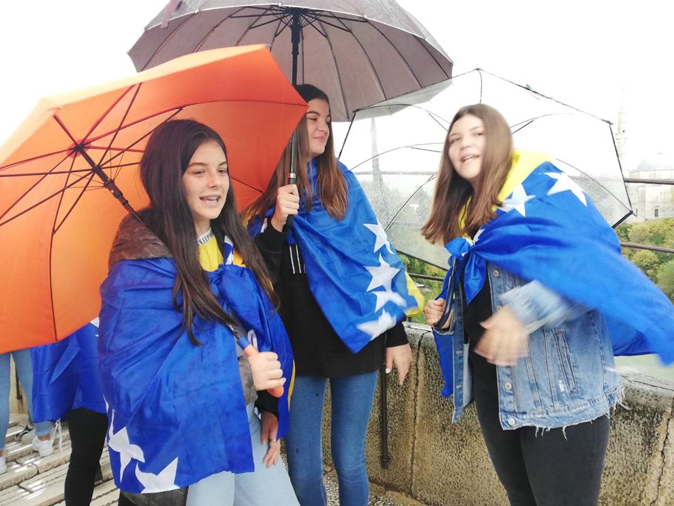 Deveti razredi naše škole su u pratnji svojih razrednika u 10:16h bili na mostu, u društvu svojih drugova iz osnovnih i srednjih škola Grada Mostara. Svojim prisustvom, ogrnuti u zastave jedine nam domovine Bosne i Hercegovine, poslali su jasnu poruku - da oni nikad neće dozvoliti da se takva strahota kojoj su građani ovog grada svjedočili prije 26 godina ponovi. Srušiti simbol grada, arhitekture i civilizacije vandalski je čin koji se nikad više nijednom gradu ne smije desiti. Mostovi ljude spajaju i simbol su ljubavi i suživota.