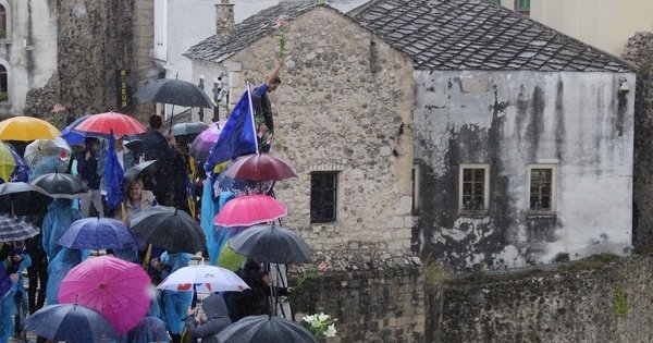 Uprkos jakoj kiši koja je padala u subotu, 26. godišnjica rušenja Starog mosta obilježena je kao i svih prethodnih godina.
