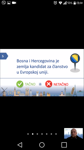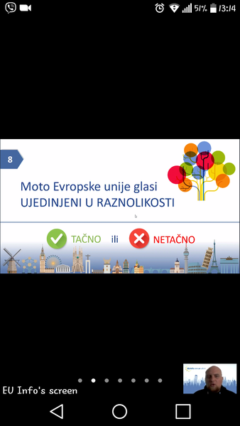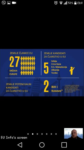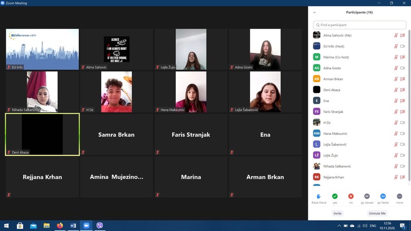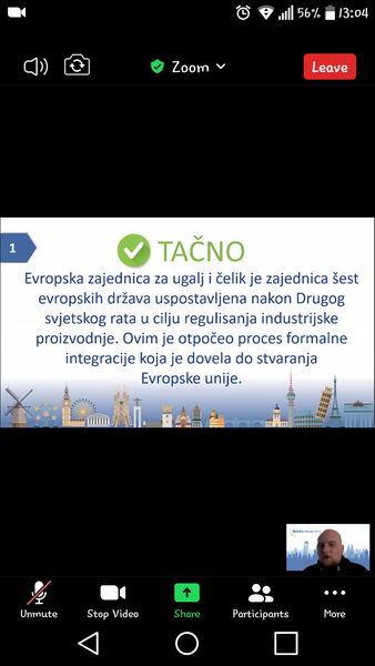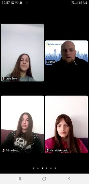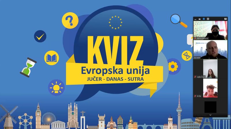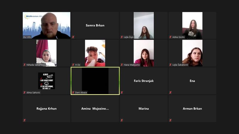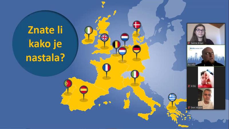 U organizaciji EU Info Centra u Mostaru danas je održana online prezentacija/kviz o Evropskoj uniji u kojoj su, zajedno s organizatorom gdinom Dariom Pejićem, učestvovali učenici VIII c odjeljenja sa svojom razrednicom.