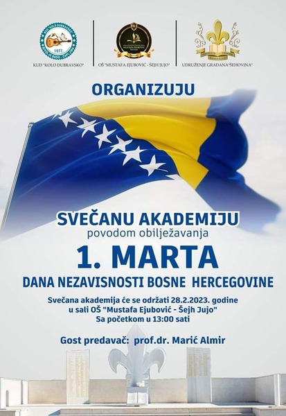 Dan nezavisnosti je od posebnog značaja za našu zemlju i njene stanovnike. Tom prilikom, naša škola će u suorganizaciji sa UG „Šehovina” i KUD „Kolo Dubravsko” upriličiti svečanu akademiju.